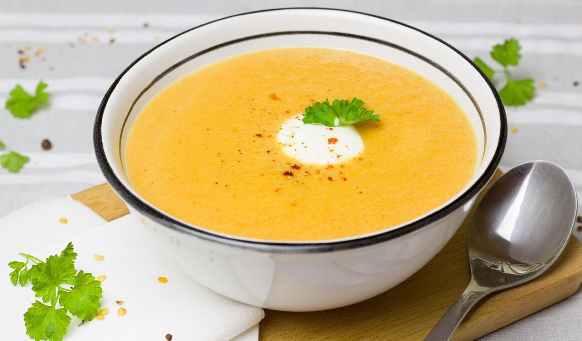 When preparing low-calorie soups, the possibilities are endless, and herbs and spices can dramatically alter flavors without impacting caloric intake. Consider experimenting with blends like Italian seasoning, cumin, or curry powder to bring different culinary traditions into your meal prepping. Add green beans, peas, and broccoli to a broth with ginger and soy sauce for a vibrant Asian-inspired soup. Likewise, you can create Mediterranean options by incorporating olives, artichokes, and seasonings like oregano. These cultural influences can elevate your dish from simple to exceptional without extra calories. The beauty of low-calorie lunch soups lies in their adaptability, truly catering to myriad tastes. It’s essential to use fresh and quality ingredients to enhance flavor. Embrace this as an opportunity to explore new toppings such as avocado or seeds, which provide healthy fats and texture. With winter approaching, soups warm both body and soul while simultaneously contributing to healthy meal choices. You can enjoy the comfort and familiarity of these soups while continually discovering new flavors and ingredients, protecting your wellness journey.
