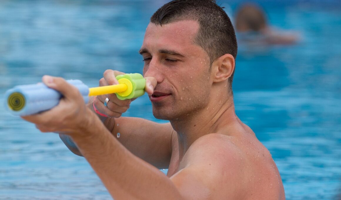 Setting realistic, measurable goals is significant in your swim training journey towards enhanced men’s fitness. Break down larger goals into smaller, attainable objectives to maintain motivation and track progress. For instance, if your primary goal is to swim a 1500-meter race, set intermediate objectives like mastering 400 meters, improving technique, or increasing your pace per lap. Documenting your progress can provide insights into areas of improvement and help you adjust training strategies accordingly. Utilize the SMART goal framework, focusing on Specific, Measurable, Achievable, Relevant, and Time-bound metrics that align your efforts. Regularly reassess your goals and training plans based on your evolving fitness levels. Engage with swim training communities or support groups—sharing experiences and challenges can foster motivation. Lastly, celebrate your achievements! Acknowledging small victories keeps you motivated and reminds you of your dedication to self-improvement. Consider rewarding yourself with swim gear, accessories, or even a well-deserved break after accomplishing a goal. This positive reinforcement nourishes your passion for swimming and ultimately leads to continuous commitment to your fitness aspirations.