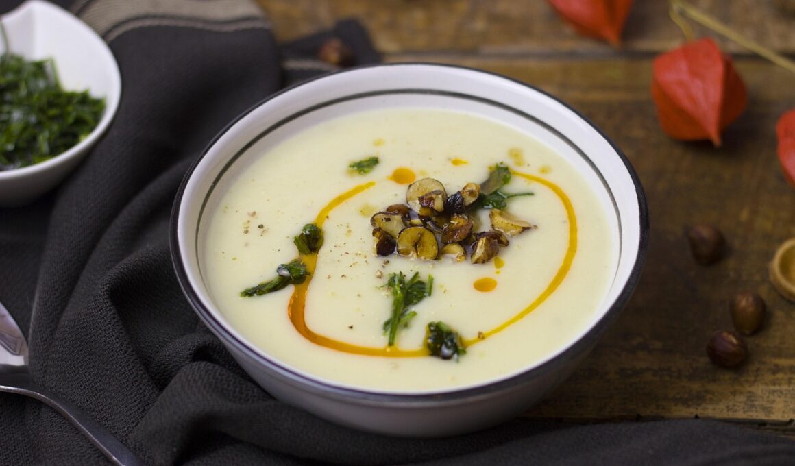 Incorporating healthy anti-aging soups into your diet can significantly enhance your overall health and vitality. Not only are these soups delicious, but they also are packed with essential vitamins and minerals that help combat aging signs. Ingredients like leafy greens, legumes, and vibrant vegetables contribute to skin elasticity and reduce inflammation. Consider including soups made with kale, spinach, or sweet potatoes as they are rich in antioxidants. To maximize flavor, experiment with various herbs and spices such as turmeric or ginger. These not only add depth but also additional health benefits. Anti-aging soups can also be easy to prepare, making them perfect for busy lifestyles. Simply combine ingredients in a pot, let them simmer, and enjoy health-promoting meals that nourish your body. With a blend of nutritious components, these soups serve as a wonderful addition to any meal, whether served hot or cold. Remember to balance your diet with these wholesome options to feel rejuvenated and youthful consistently. You can discover countless recipes online that cater to your specific taste preferences and dietary needs, ensuring your journey toward healthy aging is enjoyable and satisfying.